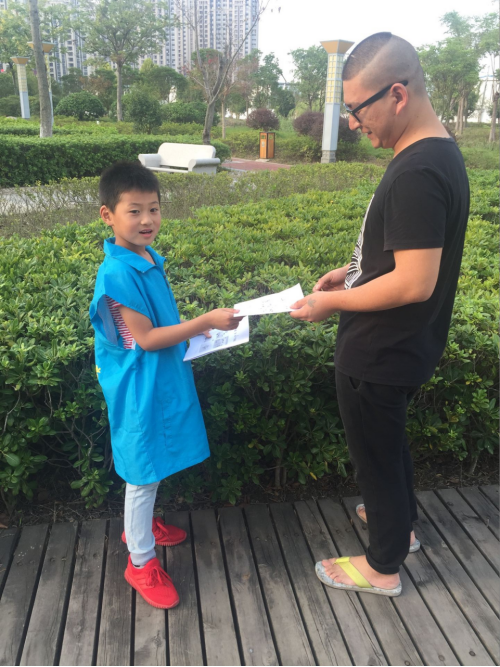 别看我们的小志愿者虽然第一次参加公益行动,但一点儿都不怯场呢,分发起宣传纸来有模有样的!
