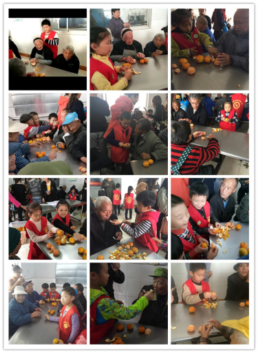 同学们首先为爷爷奶奶们送了上精心准备的水果,小朋友们为他们剥橘子,有的小朋友还亲手喂到了老人的嘴里。随后,小朋友们还集体为老人们合唱了歌曲,背诵了“弟子规”,朗朗的童声响彻在敬老院的上空,精彩的表演让老人们笑靥逐开,掌声不断。
