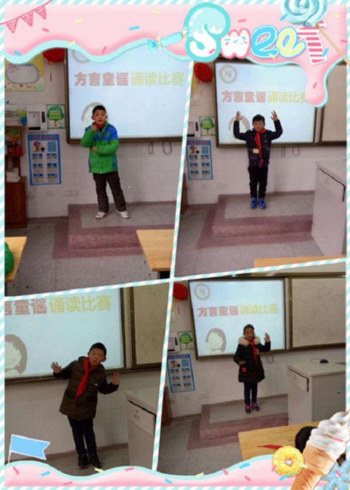 二(3)快乐童谣唱响校园 发布时间:2017-02-23 00:00:00 浏览次数: 次 【字体:小 大】 2017年2月17日下午,我班以二语教研组童谣育人为引领,开展了“快乐童谣,唱响校园”的主题活动。经过精心组织和准备,各人首先展示了本人征集的海安童谣,小评委进行打分,评出优秀童谣先进个人;然后各小组进行了童谣表演,有的快板说唱,有的边唱边演,富有节奏韵律;通过此活动,愉悦了学生身心,锻炼了身体,还潜移默化对学生进行了思想教育。 分享到: 【打印正文】