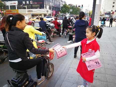 文明交通,平安出行。国庆假期,一(8)班部分小朋友们跟着爸爸妈妈加入到街头“文明交通志愿者”的宣传队伍中。