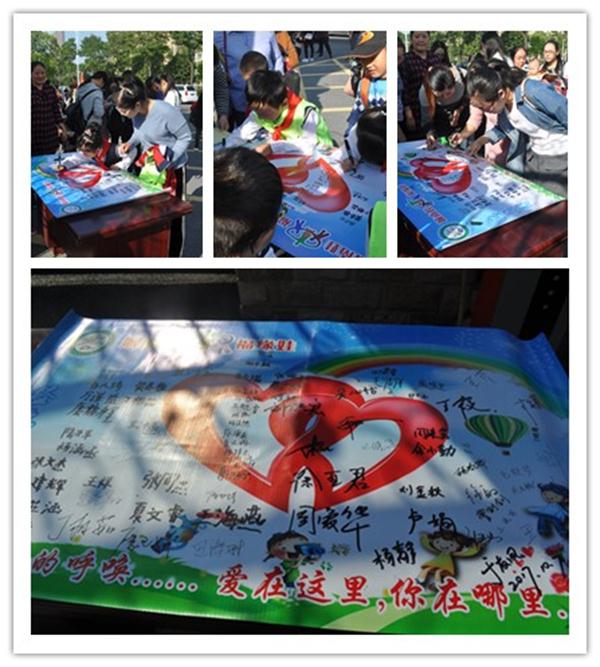 今天,2017年10月7日,连续多日的阴雨天终于停歇了,一下子艳阳高照!二(11)中队的大部分队员和家长志愿者们早早地就齐聚在学校江海明珠广场,把他们的名字落在爱心签名册上。