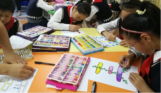 鼓励队员们自由选择可以变换创意的汉字,创意绘画时设计一或两个字作为一幅作品,作品完成时间需控制在8分钟以内。