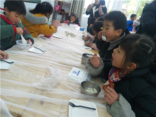 汤圆生日会 一(5)班元宵活动 发布时间:2018-03-05 00:00:00 浏览次数: 次 【字体:小 大】 这个周五,正值我国传统节日元宵佳节。“窗外月儿圆又圆,全家欢聚吃汤圆。”伴随着响亮清脆的童声,我们一(5)班这个大家庭欢聚在教室里,现场搓汤圆、煮汤圆、吃汤圆。揉糯米粉、捏馅团儿,妈妈们各显神通,把自己的一手绝活都教给了我们班的宝贝们。 看!我们搓的汤圆多大呀! 再来点馅! 哈哈!饺子汤圆! 吃汤圆喽!又香又甜,舔舔勺子…… 今天既是元宵节,也是我的生日,一起来唱首生日歌吧! 分享到: 【打印正文】