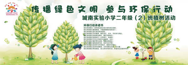 阳春三月,草长莺飞,一年一度的植树节就要到来了。为了提高同学们爱护花木,珍惜绿色的责任心,3月10日上午,我们二(2)班的同学们在爸爸妈妈的带领下开展了以“播种绿色文明,传播环保行动”为主题的植树节公益活动。