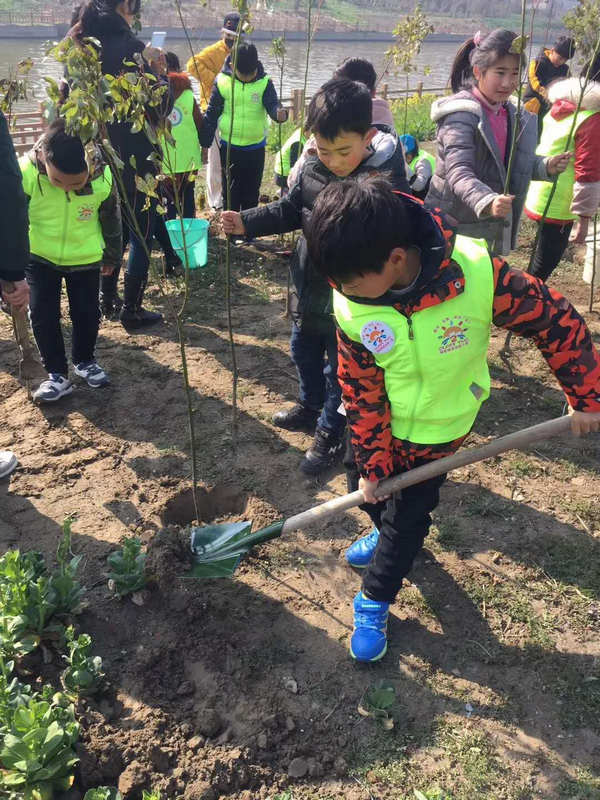 经过一个半小时的努力,同学们最终顺利完成了栽种工作。轻柔的春风中,看着自己亲手种植下的一棵棵小树,畅想着数年以后它们慢慢长大,枝繁叶茂。