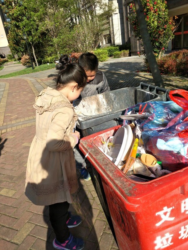 周末,队员们还走进社区,开展了垃圾分类实践活动。当清晨的阳光刚刚洒向大地,队员们就来到各自所在的小区,查看了小区里分类垃圾桶的配置情况,并随即采访了小区的保洁工人,对小区的居民进行了问卷调查。通过实践活动,队员们真正了解了小区垃圾分类处理的情况。