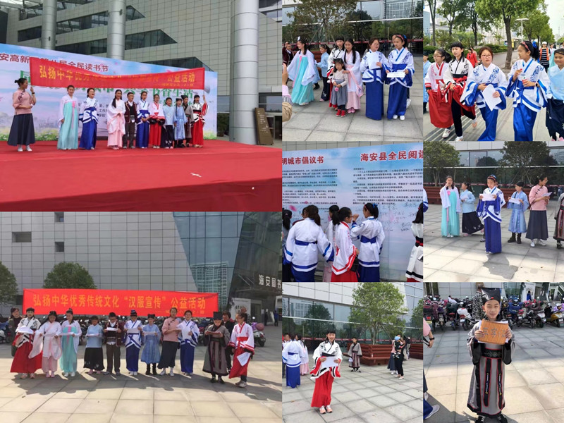 上周六,五2中队小羽志愿者分队的孩子们穿着自备的汉服,带着介绍汉服的宣传单,聚集在海安文化广场。他们怀揣着一颗复兴汉服的热心,他们要向往来的人们诉说汉服之美,汉服之痛!