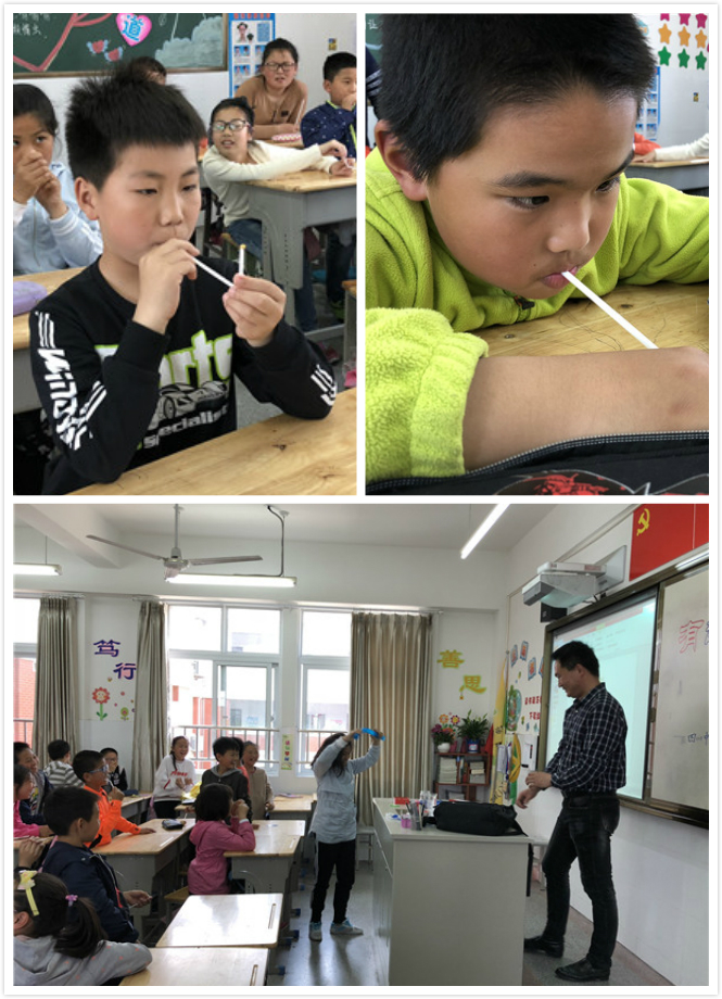 矿泉水瓶子为什么会瘪掉?对着细口漏斗吸气可以吸住乒乓球,吹气为什么也能吸住呢?小豆子为什么能浮在空中跳舞?大吸管怎样能吸出彩纸屑?实验真有趣,队员们被深深吸引住了,教室里弥漫着探索与发现的兴奋和喜悦。