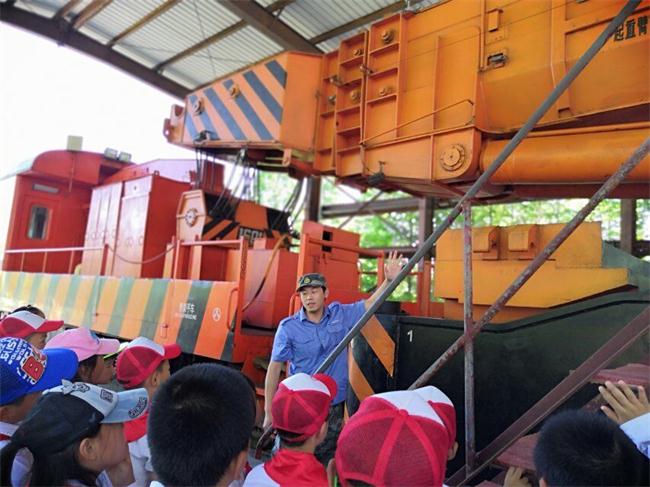 队员们排着队走进海安火车站作业区,大块的碎石、方方正正的枕木、赭红色的铁轨近在眼前,大家一个个激动不已,不过,为了安全,还是要一站二看三通过哦。