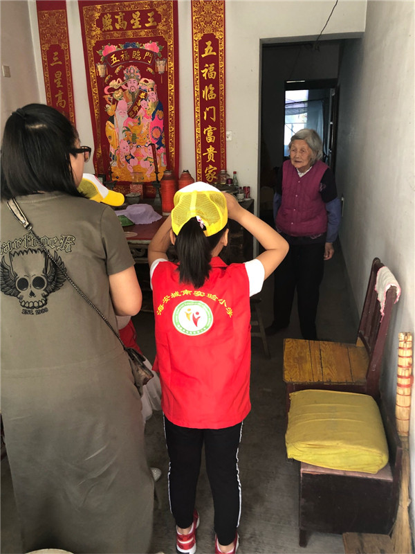 我们就要走了,看着王奶奶有些失落的表情,我们都有些不舍,不过,想想我们一3班的小伙伴们每个星期都会来陪她,我们的心情又嗨起来了!王奶奶,下个周末我们还会再来的,虽然你孤独一人,但你不孤独,因为有我们!我们城南小学一3班的公益中队!公益活动,我们一直在路上!