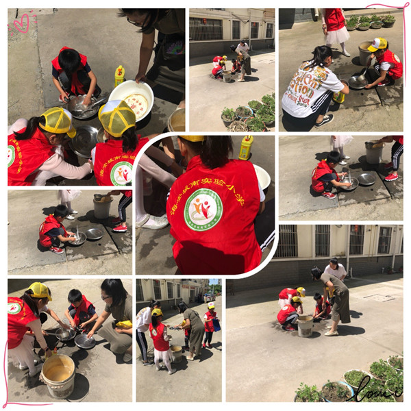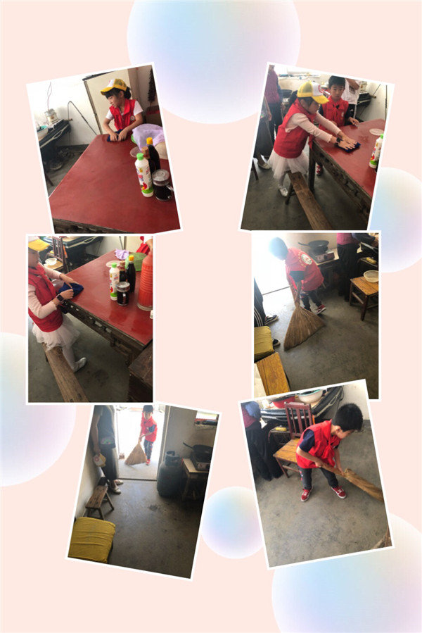 看到王奶奶家的锅碗瓢盆都沾上了油污,我们决定把厨房里所有的物品都清洗一下,在万妈妈的指导下,我们用洗洁精把锅碗瓢盆洗得干干净净!看到干净整洁的碗筷,我们心里都乐开了花!