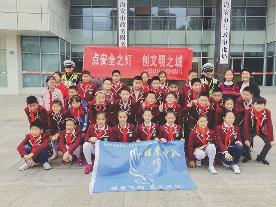金秋十月,桂子飘香,正是雏鹰试飞的好时机。10月20日下午五(8)雄鹰中队的队员们来到了海安市政务中心广场开展了“点亮安全之灯 创建文明之城”为主题的公益活动——亮尾行动。