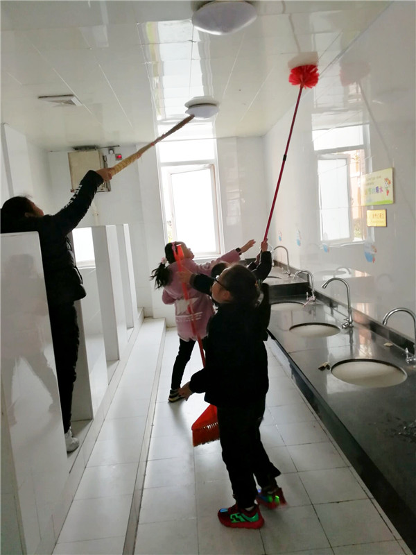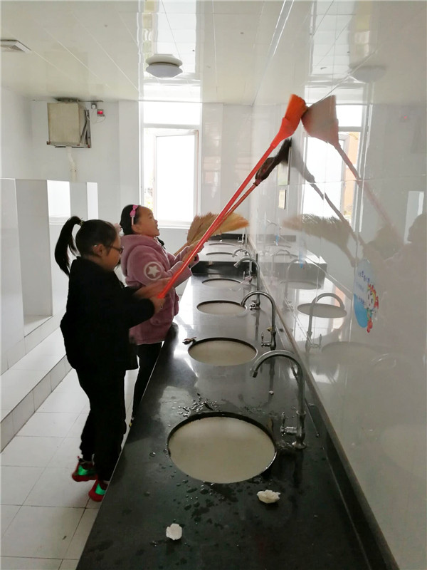 最近发现一团一团的不明飞行物栖息在学校厕所的墙壁上,走近一看,原来是一团一团的擦手纸粘在上面,很不美观。洗手池墙壁上上卫生间的天花板上都有他们的身影。这些不明飞行物怎么会而墙壁上天花板上去呢?原来是有一些调皮的小朋友觉得好玩,把沾了水的擦手指朝墙上扔,擦手纸干了之后就黏在了上面,看到这种现象,二3中队的小队员们带着清洁工具来到了这些不明飞行的栖息地,他们用长棍,扫帚把这些影响美观的家伙都赶下来,扔进垃圾桶,再用拖把干净。不乱扔垃圾,看到垃圾随手捡起。干净整洁的校园环境,应该从我们每个人做起,从身边的小事做起,同时也为海安的创文行动贡献自己的一份力量。