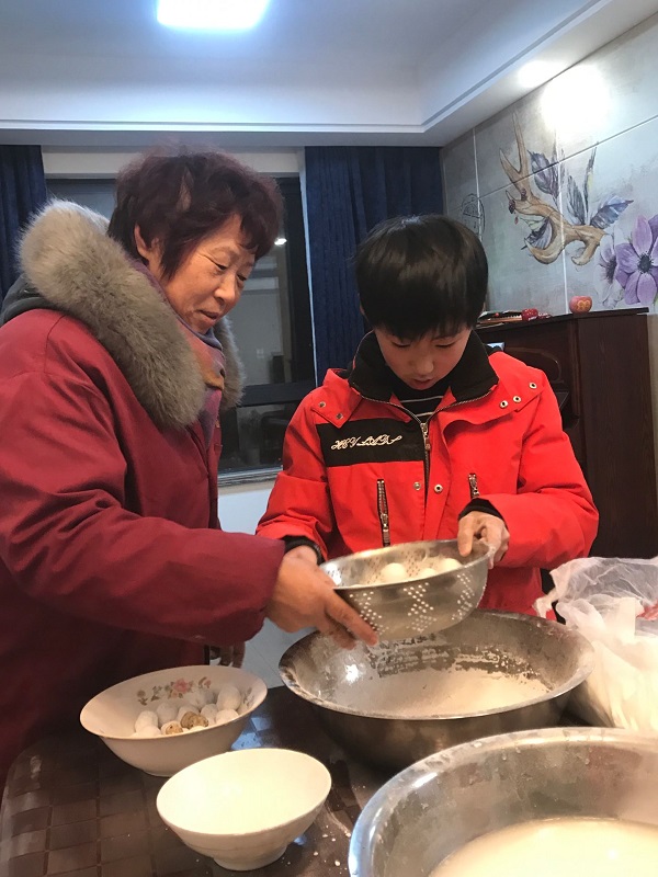 首先,孩子们在家和爸爸妈妈一起动手做汤圆,既感受了传统节日的民俗,又享受了快乐的亲子时光。