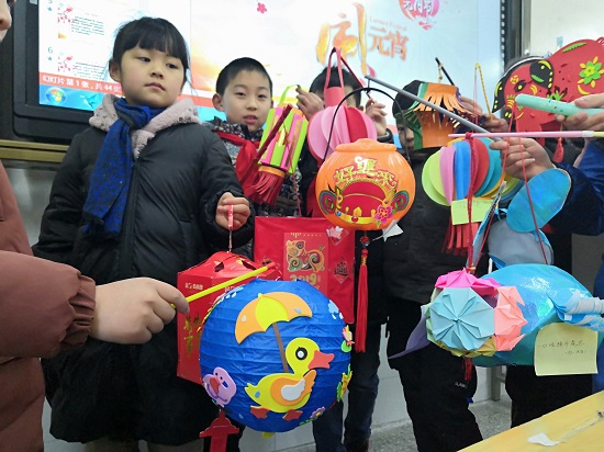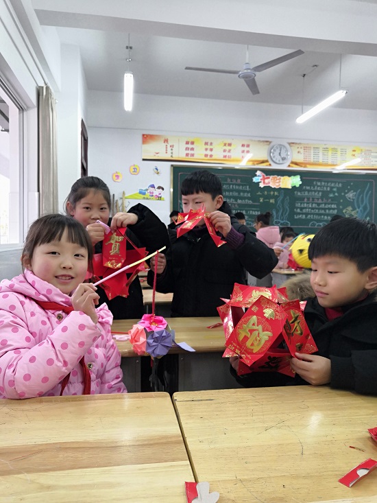 火红的灯笼、火红的福字、火红的中国结、还有那通红的笑脸……到处洋溢着浓浓的喜庆气氛。花灯虽然简陋,却是独一无二,具有自主版权的创意作品,既发挥了同学们的想象力,又让同学们充分感受到传统佳节的内涵。