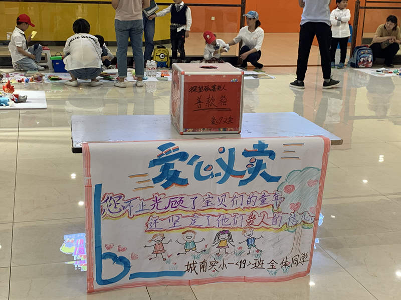 2019年5月25日下午四点,城南实验小学一19班的孩子们在家长们的带领下,来到星湖001广场,举行“卖品有价,爱心无价”的爱心义卖活动。