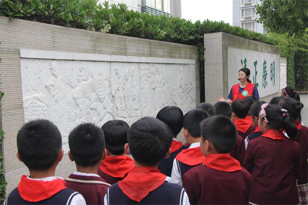 整个廉洁文化园一共分三个区域,解说员阿姨带着队员们参观了廉洁苑、道德苑、诚信苑。每位队员都敲响了“百廉钟”,愿廉洁之声永驻队员们的心间。