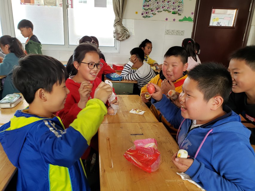 立夏欢 斗蛋乐——四1中队立夏斗蛋活动 发布时间:2019-05-22 00:00:00 浏览次数: 次 【字体:小 大】 不知不觉间,夏天悄然来临。立夏这天,四1中队举行了“立夏欢 斗蛋乐”主题活动。同学们拿着各自的蛋,先在四人小组内比赛谁的蛋漂亮,然后便开始了热闹的斗蛋。大家用自己的蛋去跟别人的蛋斗。小鸡蛋不一会儿就破碎了,而鸭蛋、鹅蛋却完好无损。卞寓希的鹅蛋最是厉害,七八个同学的蛋都是她的手下败将,最后获得“蛋王”的美誉。快乐的斗蛋迎来了欢乐的夏日。 分享到: 【打印正文】