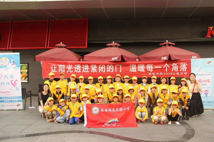 国庆70周年之际,为响应“爱自己、爱他人、爱祖国”的公益宣言,城南实验小学一(7)班彩虹中队在星湖001广场开展“关爱特殊儿童”爱心义卖活动,通过孩子们义卖筹集的善款给海安特殊教育学校的孩子们送去温暖、送去欢乐。