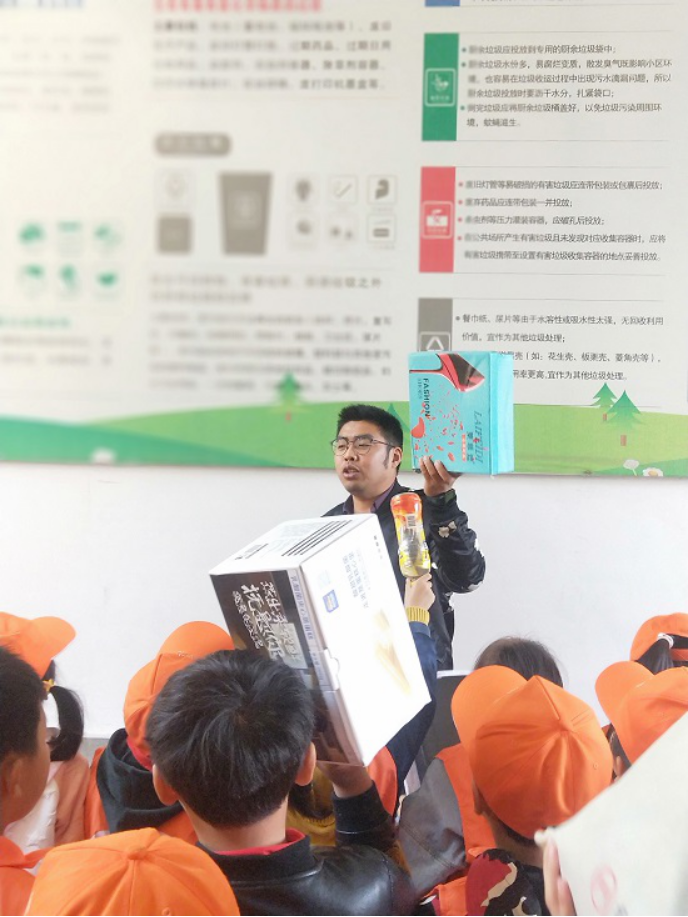为树立学生环保意识,形成良好环保行为习惯,11月9日下午,城南实验小学二(7) 小海螺中队的队员们在天楹集团环保工作人员的带领下开展了垃圾分类环保公益活动。首先,天楹集团的讲解员叔叔通过图文并茂的趣味讲解,让队员们知道垃圾的基本分类,并教会队员如何区分垃圾。队员们从家里带来了各种各样的垃圾,来到垃圾桶前将自己的垃圾进行辨别后有序投放。最后,通过投篮游戏考验队员们的学习成果。投对的队员就可以领取到一张环保宣传单。本次活动在于呼吁大家积极参与到垃圾分类中来,争做垃圾分类的先行者。