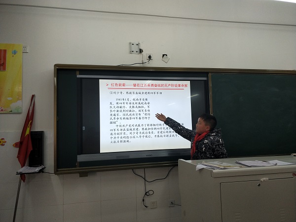 传承红色基因——五(4)中队学生讲坛 发布时间:2019-12-11 00:00:00 浏览次数: 次 【字体:小 大】 今年是新中国成立70周年,也是建党98年。从共产党建立到今天,我们的祖国经历了无数风风雨雨,无数党的英雄先烈们用他们的献血换来了我们今天的幸福生活。习爷爷说:“红色基因是要传承的,要使红色基因渗进血液,浸入心扉。”今天,我们少先队员就以“红色基因代代相传”为主题进行了学生讲坛活动。没有先烈们坚持信仰挥洒热血,就没有今天安宁又富足的生活。我们要牢记烈士遗愿,踏着烈士足迹,用自己生命和才智去传承红色基因,实现先烈们未完的遗愿,去创造共和国无限美好的明天。 分享到: 【打印正文】