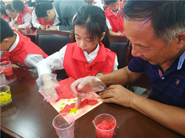 队员们和家长一起亲手制作国旗,一同参加升旗仪式,在国旗下茁壮成长。