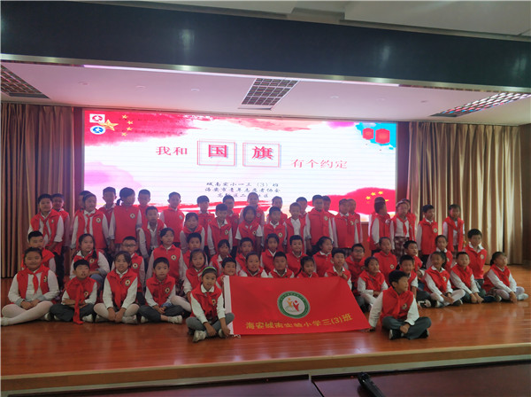 我和国旗有个约定,争当光荣护旗手——三3班国庆活动