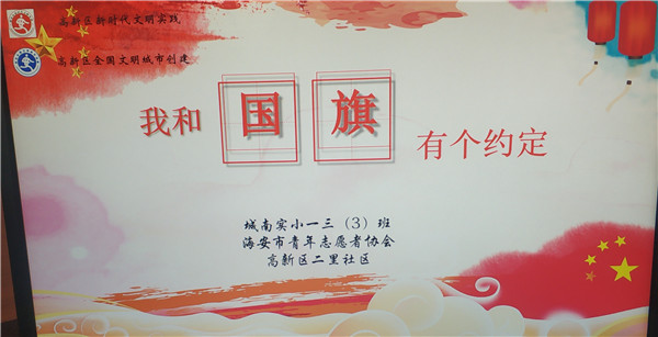 2019年10月1日,在新中国成立70周年之际,为弘扬爱国精神,培养队员们的爱国情怀,城南实验小学三(3)中队齐聚二里社区,开展了以“我和国旗有个约定,争当光荣护旗手。”为主题的国庆节系列活动。