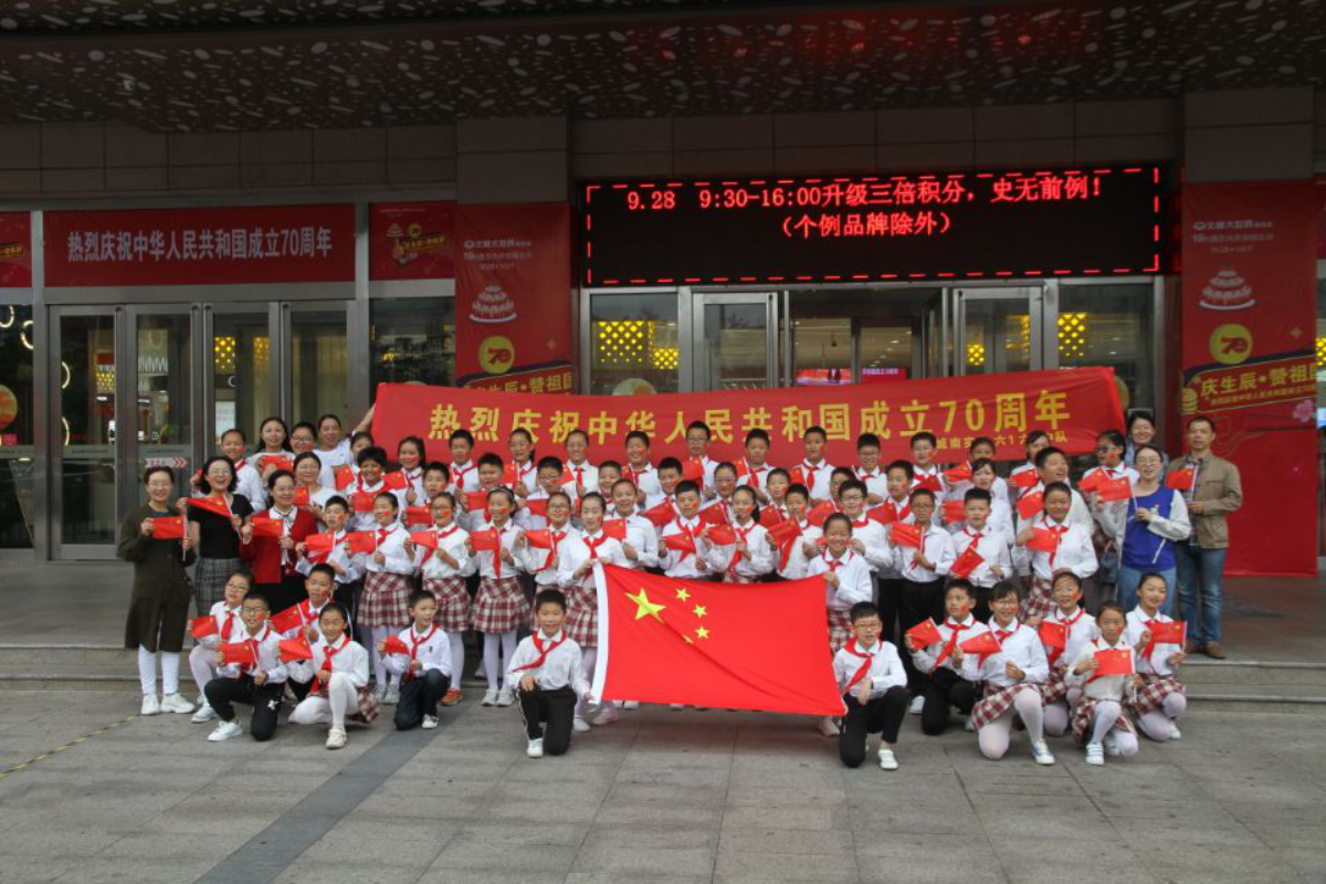 为庆祝新中国成立70周年,激发少先队员的爱国热情,展现少先队员积极向上的良好风貌。10月1日,我们六1中队的部分少先队员来到海安文峰大世界举行了“向祖国献礼,做新时代好队员” 的主题活动。