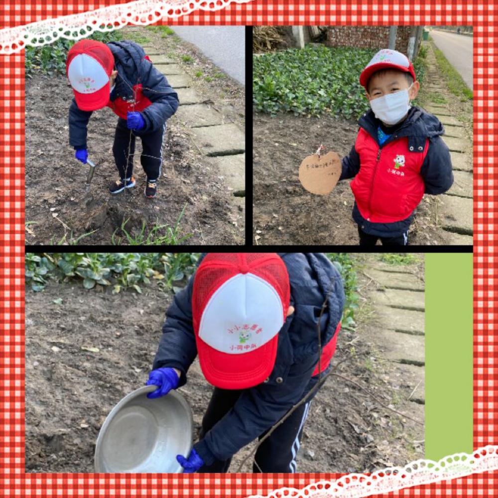 因为新型冠状疫情的影响,本次植树活动队员们只能和家长们在各自的家前屋后进行。在家长们的指导下,队员们拿起工具,有的挥锹填土,有的抬水浇灌,个个干劲十足,他们想用自己勤劳的双手为家园增添一抹新绿。