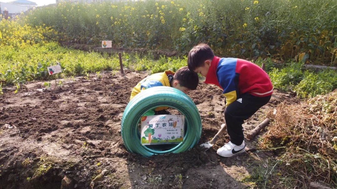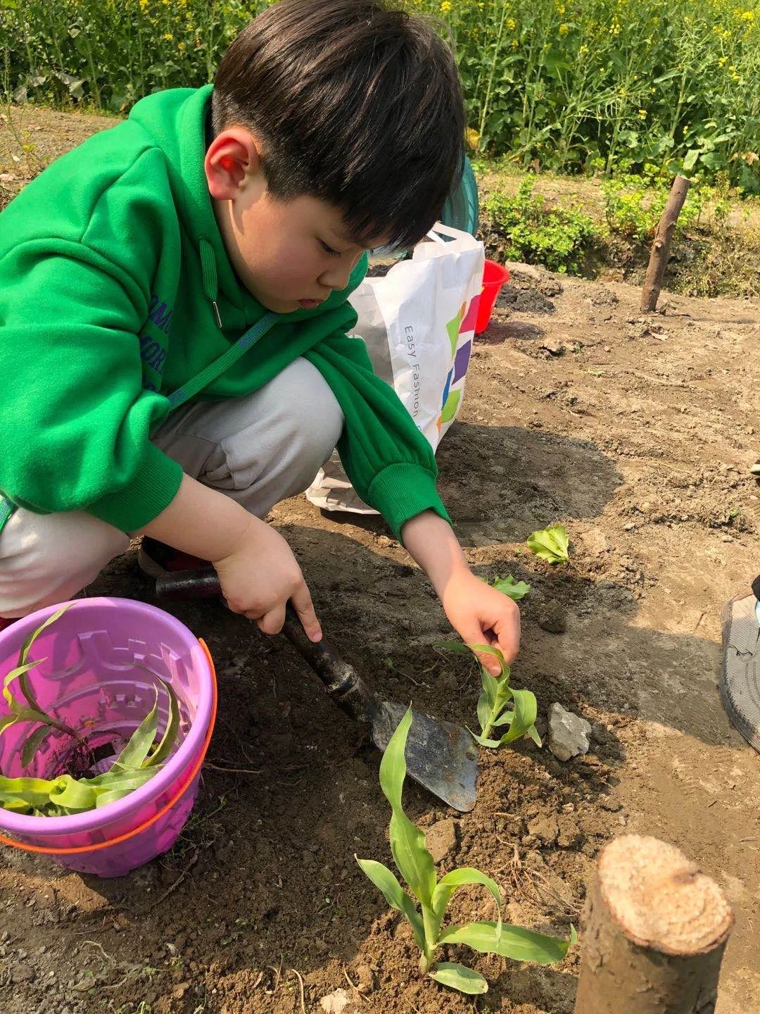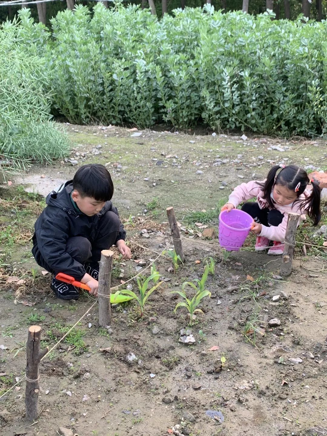 今年4月初在老师的号召下,孩子们与家长一起分小队开辟出了“我的小小实验田”劳动实践基地,每个周末孩子们都会去照看自己种下的农作物,为小苗们浇水、锄草,观察苗苗们的生长。
