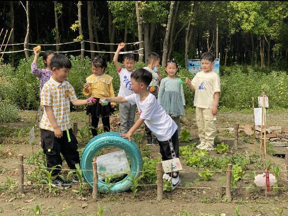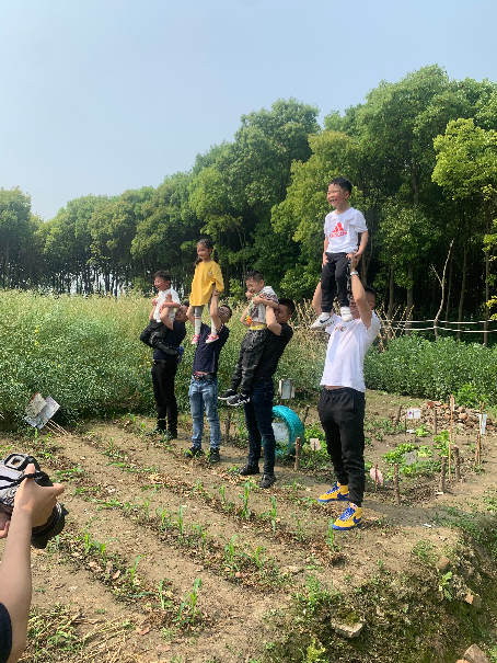 孩子们开心地在田间、地头玩起了“斗蛋”游戏,爸爸们还将孩子们高高举起,用双手“称一称”自己的孩子是不是长重了。小朋友们还动手给“小小实验田”里的小苗们浇了水,让苗苗们都喝得饱饱的。大家暗暗许愿:一定好好照顾苗苗们,希望它们能像自己一样茁壮地生长!