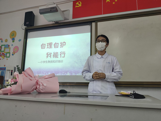 接下来,费榕姐姐以"急救知识与技能"为主题,通过图片讲解、课堂互动等形式,为孩子们进行了一堂生动的小学生急救知识培训。声情并茂的讲述让孩子们兴趣高涨,参与积极性高,现场学习氛围十分活跃,孩子们高兴地说:"真是受益匪浅,今天学到了很多急救知识"。