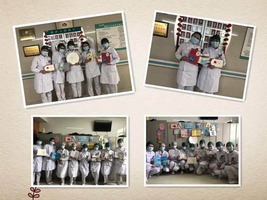 节日的气氛很快也传到了海安市人民医院,护士姐姐阿姨们也收到了孩子们精心设计的贺卡,简单的卡片写满了对医护工作者浓浓的节日祝福以及崇高的敬意。