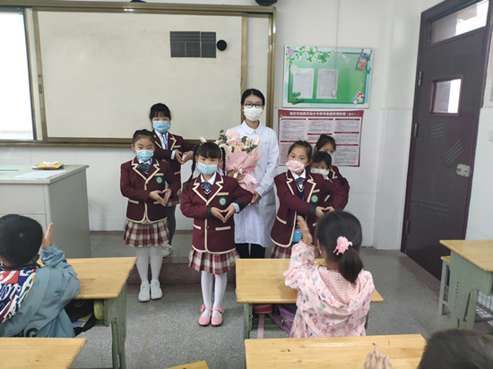5月12日,在第108个国际护士节来临之际,为了加深学生对护士辛勤工作的了解,学习医护人员长期以来无私奉献的精神,培养孩子们吃苦耐劳、自强不息的信念,海安市城南实验小学一8班联合一12班的孩子们邀请了海安市人民医院援鄂护士费榕姐姐一起开展了“携手白衣天使,健康与爱同行”系列活动。