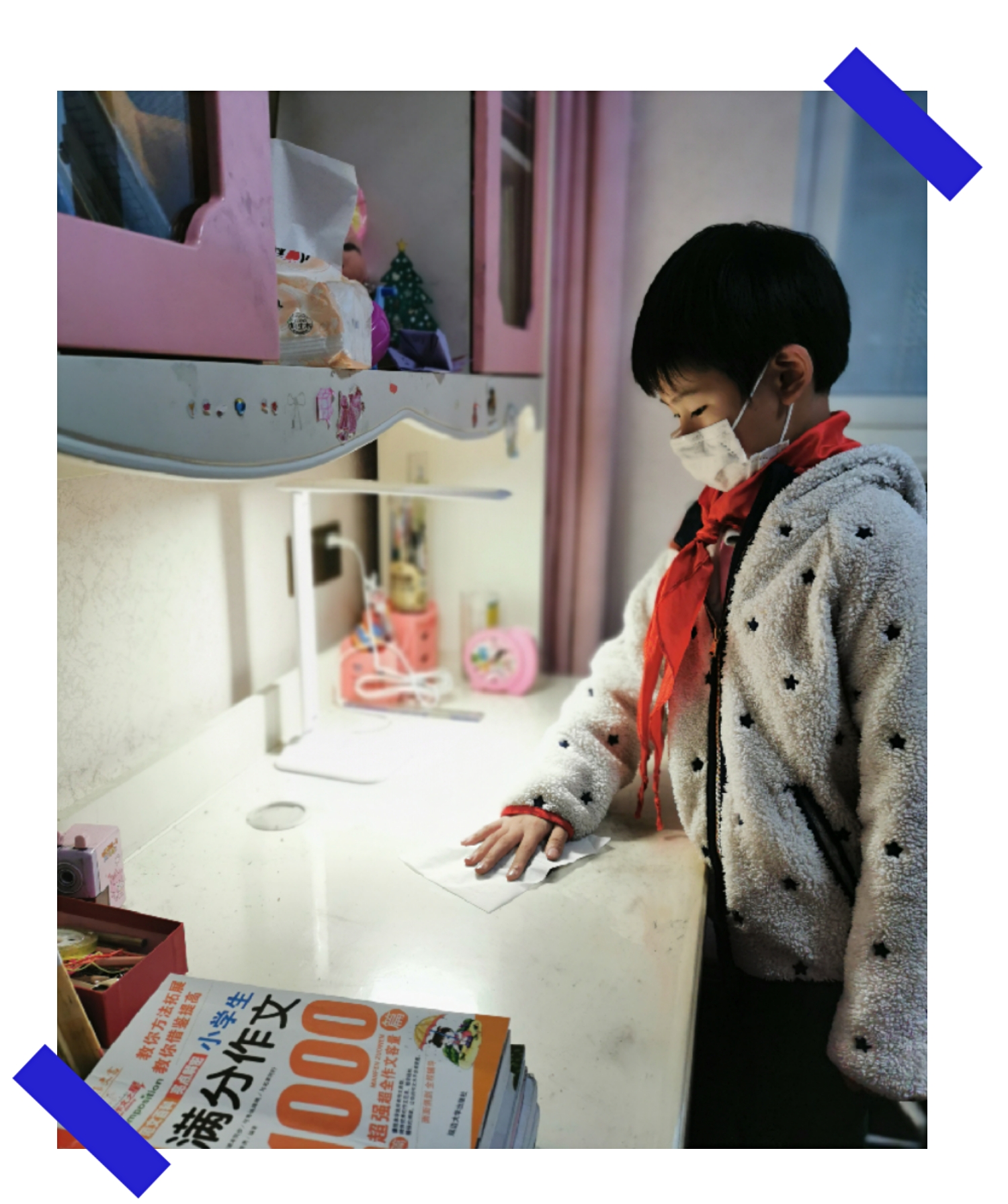 庭院里,风吹之后的落叶虽然很有诗情画意,但是在队员们认真清扫之后,整个校园是不是看上去更加整洁了呢?走廊上,小小队员们不放过地上的一点纸屑,甚至是横椅下的小小的枯叶也逃不过他们的火眼金睛。擦窗台和瓷砖的队员们就更加认真了,雪白的墙壁上看不到一点点污渍,不相信,你用手指擦一擦?