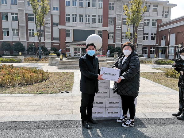 爱心接力,携手抗疫——家长捐物助防控,雪中送炭显真情 发布时间:2020-06-23 00:00:00 浏览次数: 次 【字体:小 大】 继3月7日普泽大药房为学校疫情防控工作加油助力后,3月8日上午,我校一年级7班刘子墨家长为学校捐赠了10箱共计一万只医用手套,为学校打好防疫保卫战尽自己的一份力量。校长许卫兵代表学校对家长的无私奉献和对学校防疫工作的大力支持表示衷心的感谢。抗疫虽难,但家长的支持给了学校巨大的助力,家校互信与互助坚如磐石。在社会各界爱心人士的无私帮助下,我们一定能够全面打赢这场疫情防控阻击战,很快校园中将重新看到孩子们幸福的笑脸。 分享到: 【打印正文】