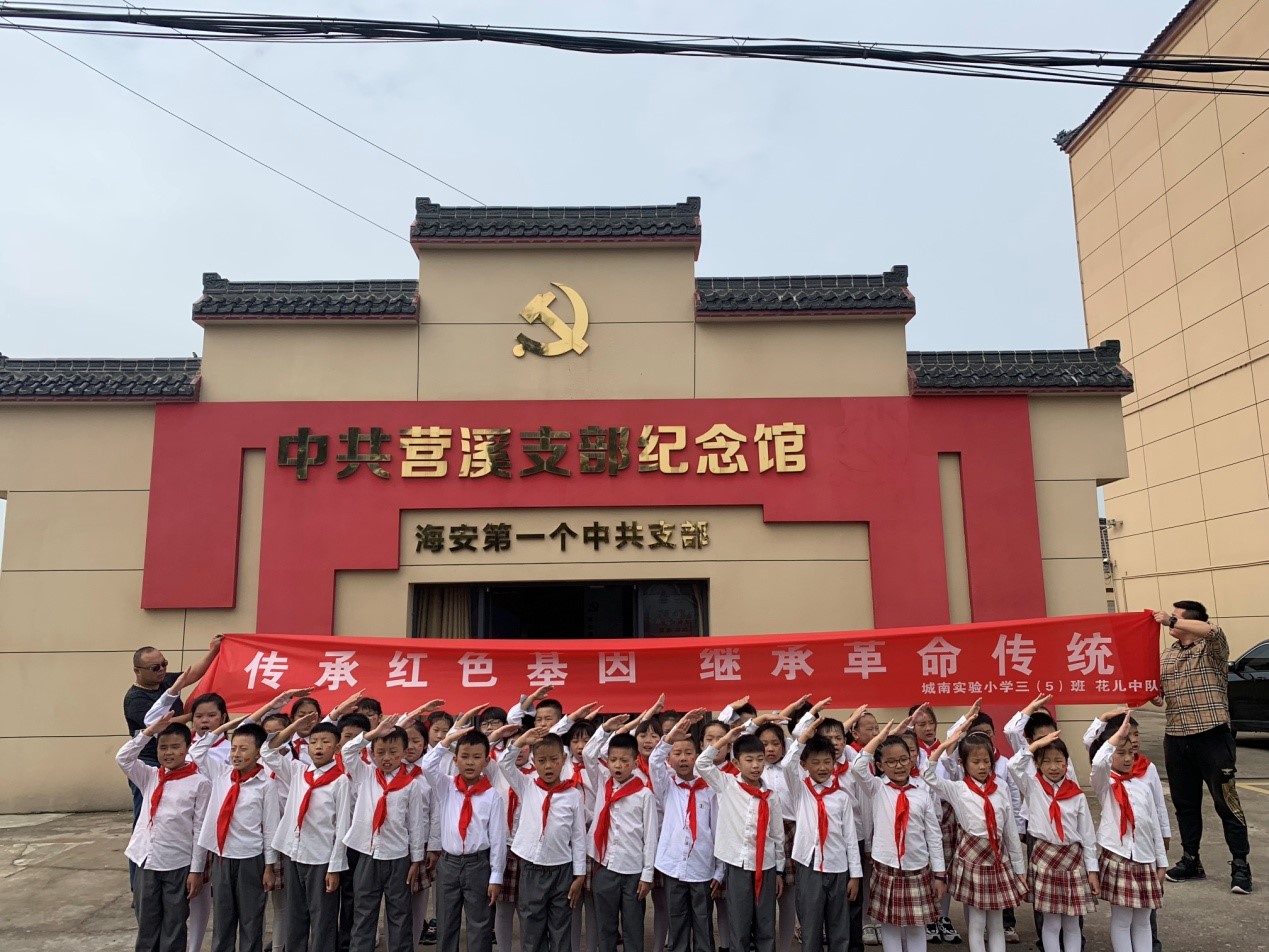 为加强青少年爱党爱国教育,弘扬“红色文化”,追寻红色记忆,激发孩子们的爱国热情,10月3日上午,海安市城南实验小学三(5)班全体学生怀揣着无比崇敬的心情走进海安第一个中共支部--中共营溪支部纪念馆,重温革命历史。