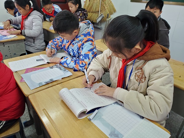近期,四10中队的队员们充分利用课余时间,积极投身到“练字”的队伍中。储老师指导大家写字要做到“字迹清楚、书写工整、行款整齐、卷面清洁”,为了能有一手好字,队员们都下定决心潜心练字,用坚持的汗水收获成功。瞧,有的在喧闹的课间沉浸在揣摩笔画的思考里,有的在家里静心苦练,还有的向老师请教各种写字的要领。