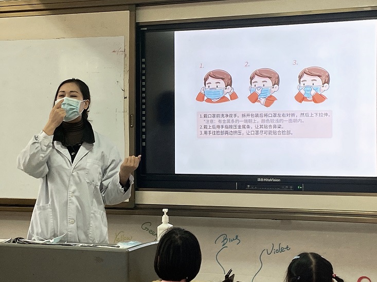 关注卫生,关注健康!——一(6)中队开展卫生日主题活动 发布时间:2021-06-14 00:00:00 浏览次数: 次 【字体:小 大】 世界卫生日的宗旨是希望引起世界各国对卫生问题的重视,并动员世界各国人民普遍关心和改善当前的卫生状况,提高人类健康水平。今天,海安人民医院的吴许丹护士到城南实验小学一年级7班给同学们普及了相关卫生知识。社会大环境下,我们呼吁同学们戴口罩,勤洗手,不给病毒有可乘之机。吴护士讲解并示范了如何正确使用消毒洗手液进行七步洗手,同学们纷纷伸出小手跟着一起做,把洗手卫生谨记心中。 分享到: 【打印正文】