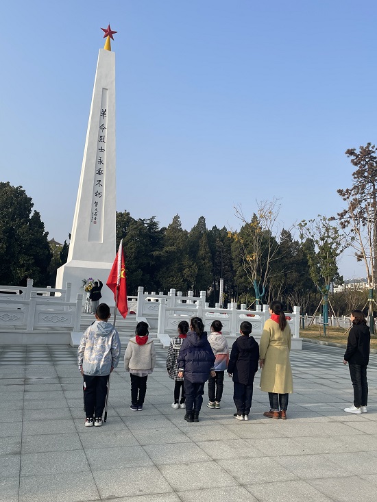 2021年12月11日上午,海安市城南实验小学东校区二年级向阳花小队寻访了海安烈士陵园。在波澜壮阔的中国革命历史进程中,英雄海安留下了不灭的印记。8位队员在辅导员老师的带领下,回望峥嵘岁月,感知历史温度,铭记英烈,致敬英雄。