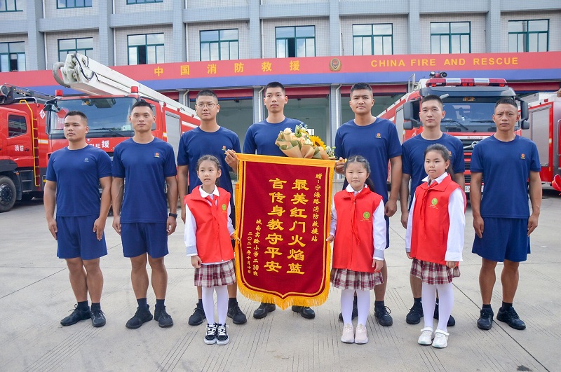 10月10日上午,海安城南实验小学围绕“传播消防知识 共建平安家园”这一主题,组织二(10)班的学生们来到海安消防大队,与消防员们进行了一次零距离的接触。