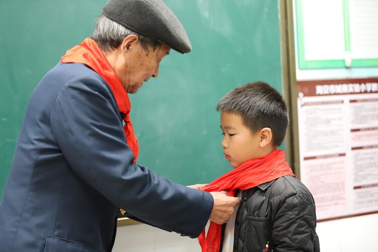 “孩子们,看到你们就是看到了希望,看到了祖国的未来,看到了新时代的接班人!” 薛家锦带着深深的寄托为队员代表系上红领巾,他嘱咐队员们一定要努力学习,将来为祖国多作贡献!