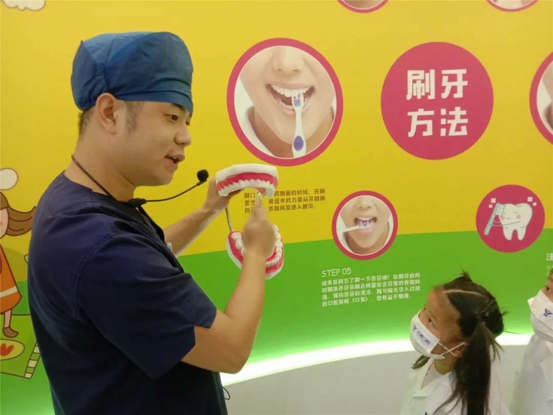 走进科普长廊,牙科医生绘声绘色地向同学们介绍了爱牙日的来历、牙齿的结构和功能,乳牙与恒牙的区别、蛀牙的起因等口腔医学知识;介绍了有关口腔保健知识和口腔疾病的产生原因、症状及危害;重点讲述了防龋齿三部曲以及如何保护牙齿的主要方法。讲解中,孩子们聚精会神地听得,时而提出自己的问题,时而回答牙科医生提出的问题。