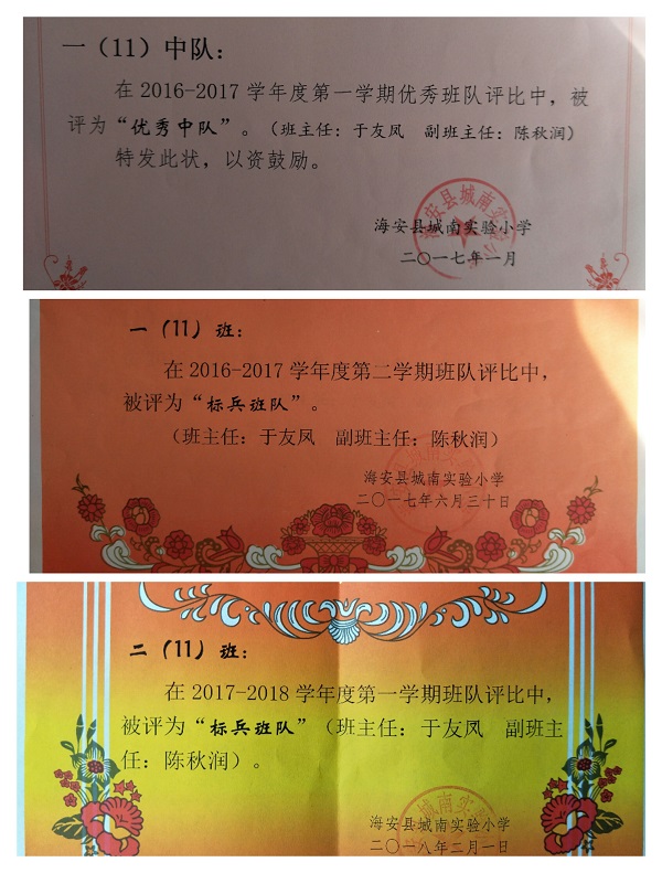 七色花中队的每个成员尽情绽放着自己的绚丽色彩。在县福缘大队张锁妈妈的带领下,中队公益活动丰富多彩,有声有色,孙海辰、崔婧雯等8个孩子获县福缘大队“爱心宝贝”称号;中队获得全国“动感中队”、县“先进学生集体”的称号;辅导员于友凤老师获县“优秀班主任”“优秀党员”、校“最佳教学奖”的荣誉;中队被评为校“标兵班级”“优秀班级”;孙雲、孙海辰、王沐菡等孩子在省、县报刊上发表文章8篇;吴晓丽、孙子昂、崔东元、孟莉莉等优秀家长代表为中队的各项活动出谋划策,亲力亲为,着实让人幸福并感动。