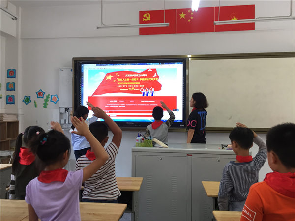 四年级部开展了网上“向国旗敬礼”活动,全体学生立正,向国旗敬礼,庄严的仪式激发了学生对国旗的敬畏之情。观看了电影《厉害了,我的国》,了解了新中国新时代的变化,日新月异又超时代的科技力量让学生充满了自豪感。国庆假期间,孩子们还将开展红领巾寻访活动,采访两位抗美援朝的老红军,听抗战故事,表爱国情怀!