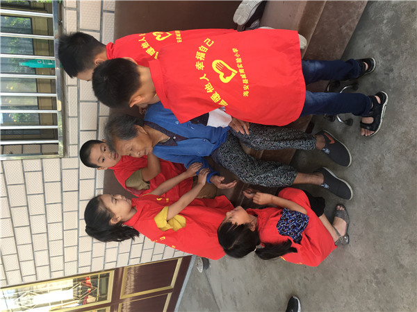 重阳节,最让队员们牵挂的是那些弱势群体,他们的亲人不在身边,他们更需要别人的陪伴。周末,许多中队的队员代表在家长的陪同下走进空巢老人家庭,或者来到敬老院,陪老人聊天,给老人捶背,表演精彩的节目,给老人们送去了亲人般的温暖。队员们还走上街头关爱年纪大的环卫工人,帮助老人们打扫卫生,和他们聊学校和生活中的趣闻,陪老人们一起做游戏。队员们在公益活动中再次感受了“温暖他人,幸福自己”的内涵。