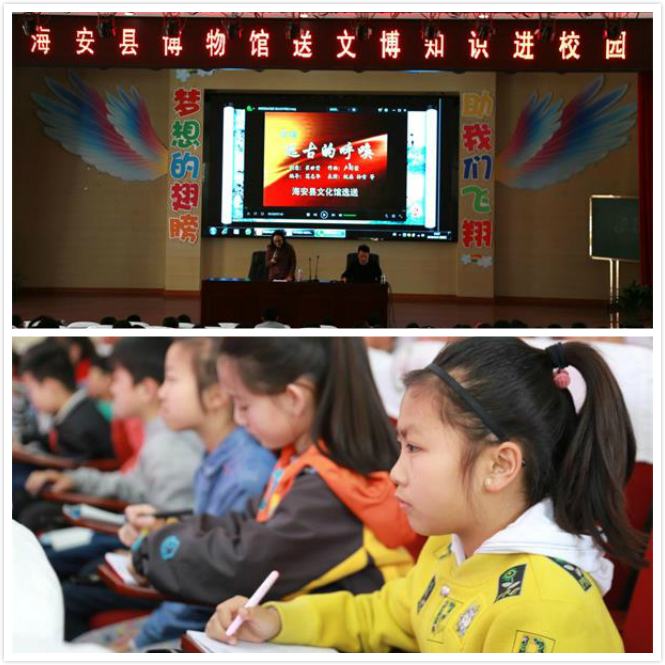 4月18日中午,海安县城南实验小学邀请海安县博物馆宣教部吴爱华主任到校,为我校的200多名江海小记者们做了题为“穿越海安历史”的专题活动。