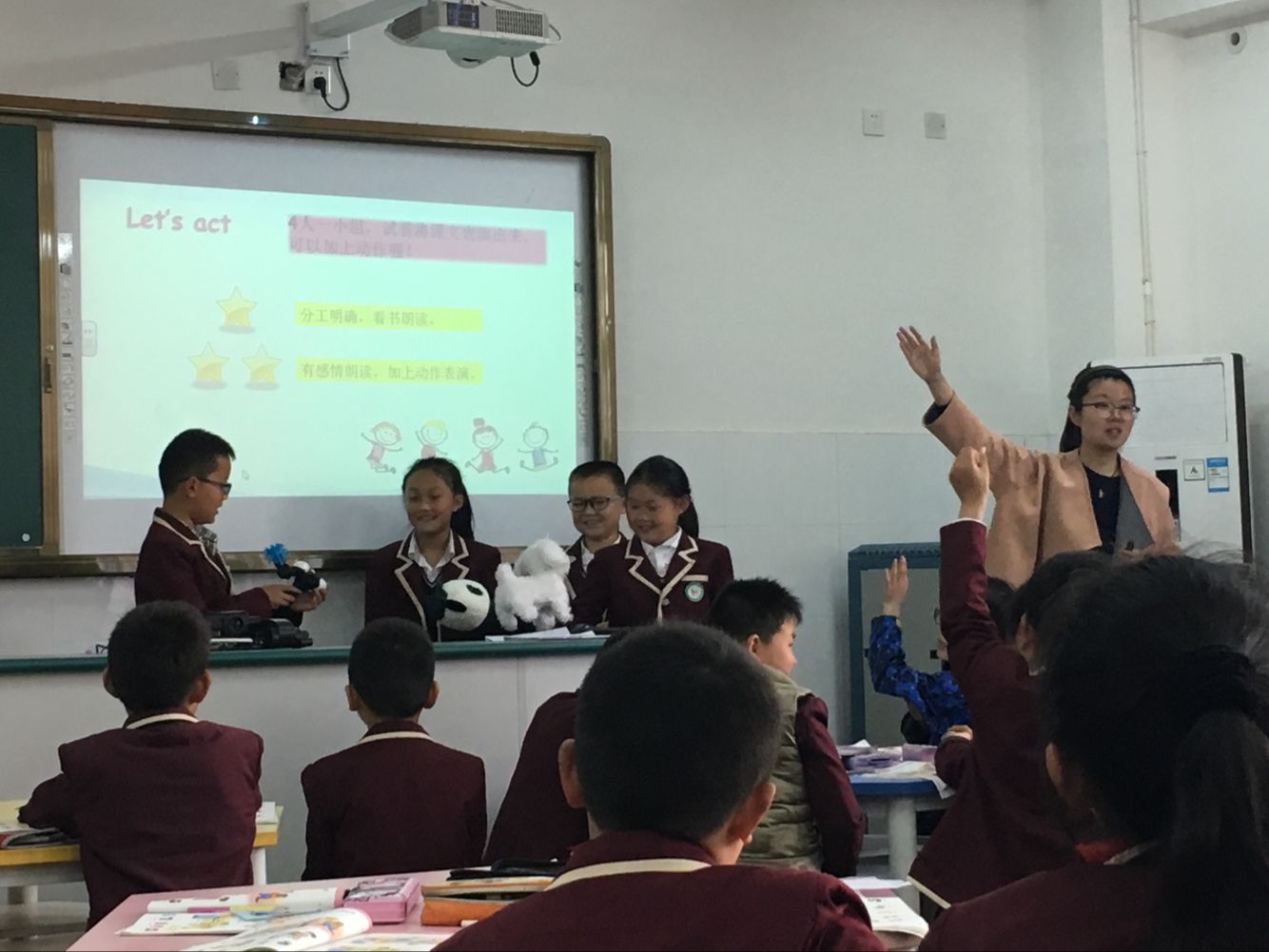 教师的专业成长离不开日常教学的磨练。根据教学科研处安排,每位老师每学期都必须执教校级或组内公开课。朱珠老师执教的是3B《Unit5 How old are you》。本次教学活动中,朱老师运用了多媒体课件等多种手段创设了生动有趣的情景,开展了新颖活泼的活动,成功激发学生的学习兴趣。朱老师在课堂上设计了富有层次的练习,对新授内容及时巩固,最后将教学内容与主题绘本相结合,提升学生的综合语言运用能力。