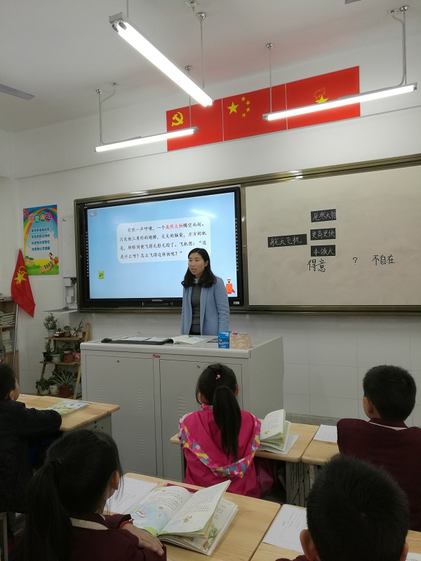 在学完课文后,周老师给学生看一些航天科技方面的图片和资料,同时鼓励学生将自己搜集的一些航天资料与大家分享,激发了孩子们从小学科学、爱科学的热情。